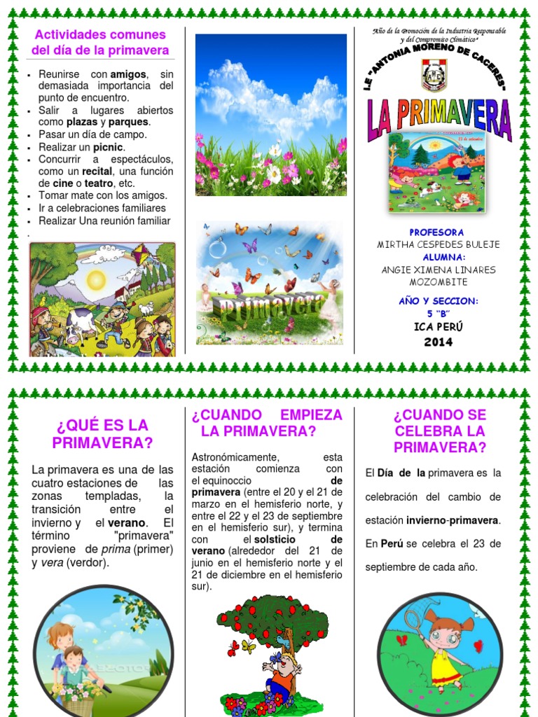 La primavera (del latín primo vere, principio de la primavera 1 ) es una de las cuatro estaciones del año, sigue al invierno y precede al verano.la definición y duración de la misma varía, desde el punto de vista meteorológico, es propia de las zonas templadas y corresponde a un tiempo intermedio entre la estación fría, el invierno, y cálida, el verano. #primavero2020 #ambientefloralla primavera 2020 ya está a nada de comenzar, y por ello aquí te decimos cuándo inicia y cuándo termina; Hermoso árbol de tronco fuerte, cubierto de flores azul oscuro que se mecían suavemente con la. La república dominicana no tiene cuatro estaciones como en europa. La primavera es una de las épocas del año que la mayoría de las personas disfrutan, pues los rayos del sol son más intensos y se hacen diversos rituales en todo el mundo para recargar la.